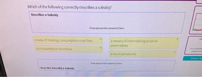 Solved Which Of The Following Correctly Describes A Subsidy Chegg Com